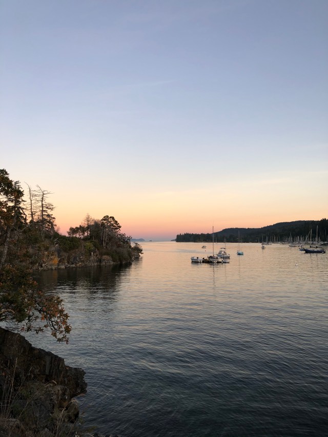Make sure you check out the food and non-food items on display in the Salt Spring Saturday Market in Ganges, if you travel in the summer or early fall. Most of what’s on sale has been made, cooked or baked by the individual selling it to you. And even if you’re not in the purchasing mood, it’s still lovely to walk around and admire. I’d also highly suggest just having a stroll around Ganges in general, and popping in to the local shops and galleries. There is a nice walk around the harbour via the boardwalk too. And if you’ve read my other posts, you’ll know I can’t resist catching a sunrise or sunset. And the view of the sun setting from Ganges was superb.