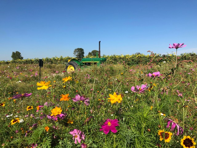 They provide plenty of staged areas for ‘photo ops’ throughout the flowers as well, from farm equipment, to cars and bicycles, to a swing chair… and more! If you’re needing to cool down or enjoy a beverage or snack, they have vendors providing this at the entrance, and I believe they have even added a yoga class on Thursday evenings for 2021. There’s so much to explore, and it’s a something a little different guaranteeing a great day out.